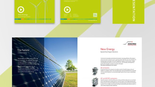 After years in brochure design, the editor has observed a "green revolution" in promotional materials for new energy companies. A recent example is Germany's Schaltbau, a